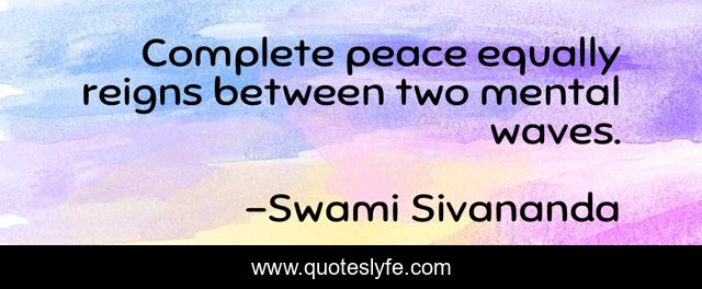 This page presents the quote "Complete peace equally reigns between two mental waves.". Author of this quote is Swami Sivananda. This quote is about waves, mental, two,.