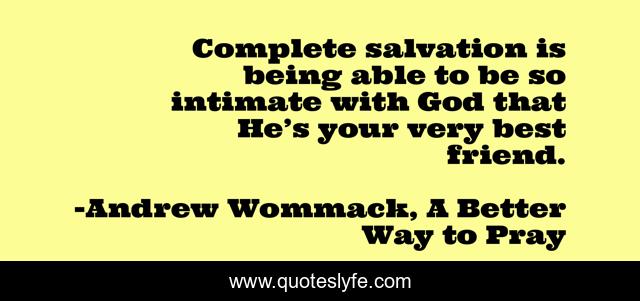 This page presents the quote "Complete salvation is being able to be so intimate with God that He’s your very best friend.". Author of this quote is Andrew Wommack, A Better Way to Pray. This quote is about best-friend, salvation, prayer,.