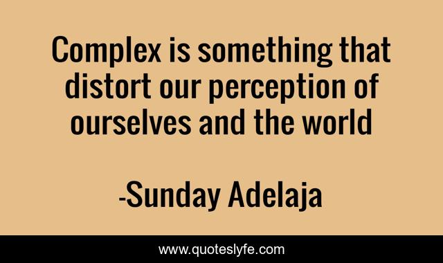 This page presents the quote "Complex is something that distort our perception of ourselves and the world". Author of this quote is Sunday Adelaja. This quote is about life, perception, goal, mission, distort, calling, complex, purpose, world,.