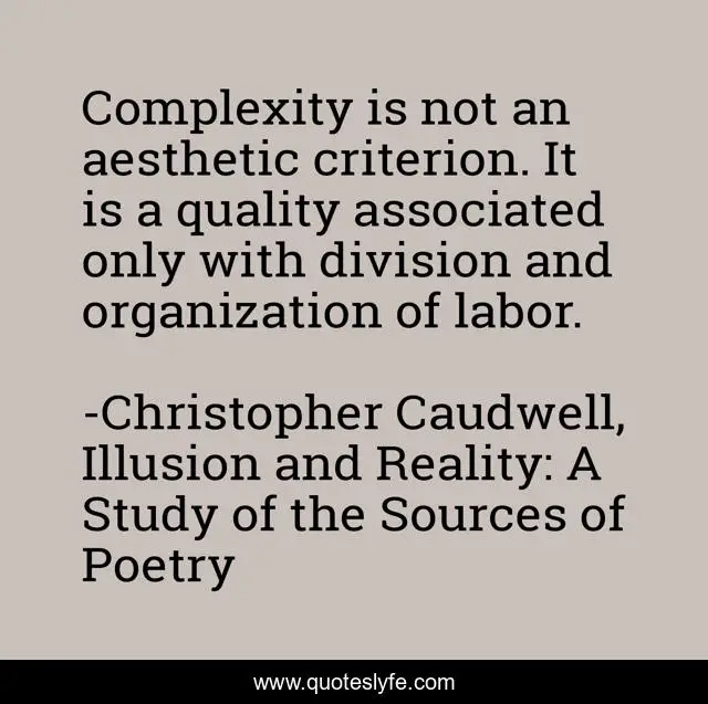 "Christopher Caudwell, Illusion and Reality: A Study of the Sources of Poetry Quotes." Quoteslyfe.com, 2025. Sat. 13 Dec. 2025. <https://www.quoteslyfe.com/quote/Complexity-is-not-an-aesthetic-criterion-It-209959>.