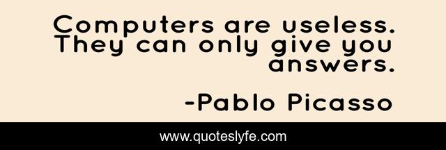 This page presents the quote "Computers are useless. They can only give you answers.". Author of this quote is Pablo Picasso. .