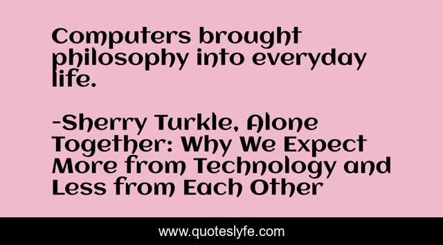 "Sherry Turkle, Alone Together: Why We Expect More from Technology and Less from Each Other Quotes." Quoteslyfe.com, 2025. Sun. 07 Dec. 2025. <https://www.quoteslyfe.com/quote/Computers-brought-philosophy-into-everyday-life-196597>.