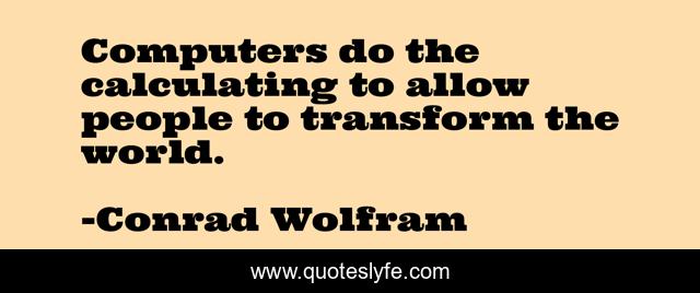 This page presents the quote "Computers do the calculating to allow people to transform the world.". Author of this quote is Conrad Wolfram. This quote is about world, transform, people,.