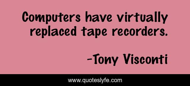 This page presents the quote "Computers have virtually replaced tape recorders.". Author of this quote is Tony Visconti. This quote is about tape, replaced, virtually,.