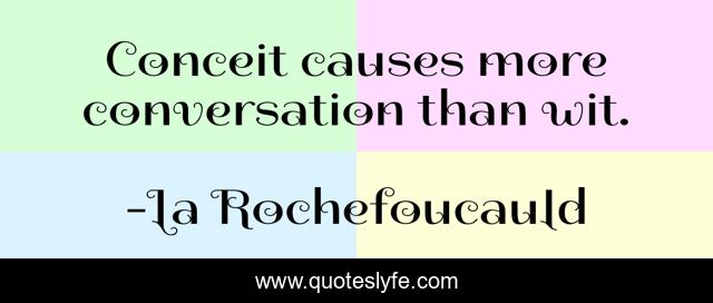 This page presents the quote "Conceit causes more conversation than wit.". Author of this quote is La Rochefoucauld. .