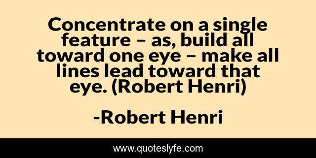 This page presents the quote "Concentrate on a single feature – as, build all toward one eye – make all lines lead toward that eye. (Robert Henri)". Author of this quote is Robert Henri. .