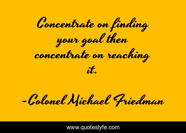 "Colonel Michael Friedman Quotes." Quoteslyfe.com, 2025. Sat. 06 Dec. 2025. <https://www.quoteslyfe.com/quote/Concentrate-on-finding-your-goal-then-concentrate-262021>.