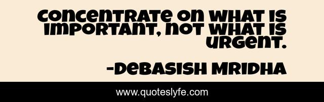 This page presents the quote "Concentrate on what is important, not what is urgent.". Author of this quote is Debasish Mridha. This quote is about life, love, knowledge, inspirational, intelligence, philosophy, wisdom, quotes, affection,.
