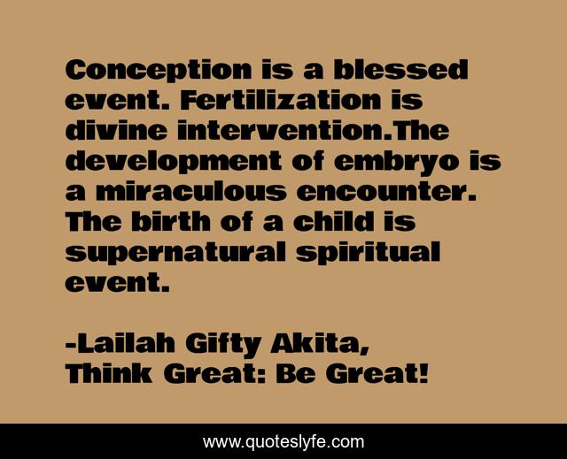 "Lailah Gifty Akita, Think Great: Be Great! Quotes." Quoteslyfe.com, 2025. Sun. 14 Dec. 2025. <https://www.quoteslyfe.com/quote/Conception-is-a-blessed-event-Fertilization-is-99898>.