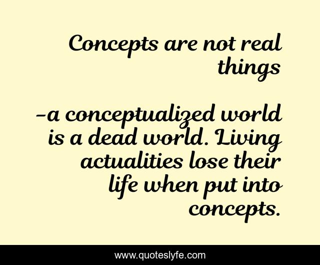 "a conceptualized world is a dead world. Living actualities lose their life when put into concepts. Quotes." Quoteslyfe.com, 2025. Fri. 05 Dec. 2025. <https://www.quoteslyfe.com/quote/Concepts-are-not-real-things-195103>.