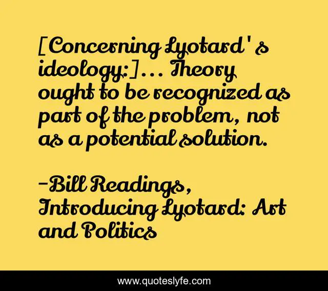 "Bill Readings, Introducing Lyotard: Art and Politics Quotes." Quoteslyfe.com, 2025. Sat. 06 Dec. 2025. <https://www.quoteslyfe.com/quote/Concerning-Lyotard-s-ideology-Theory-ought-to-42512>.