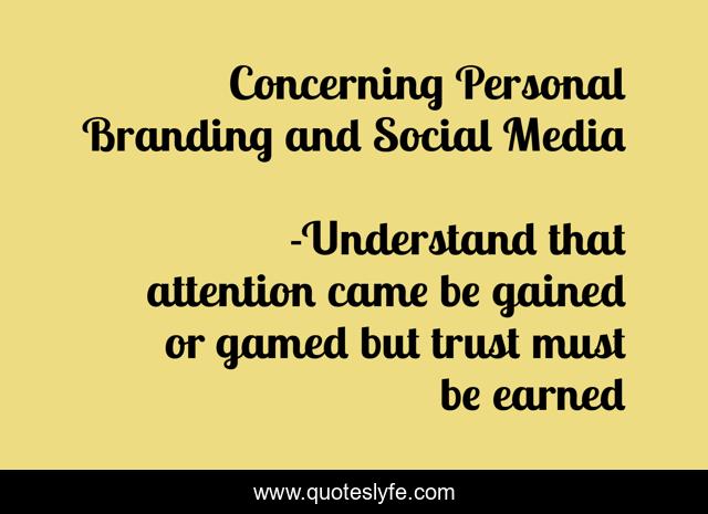 "Understand that attention came be gained or gamed but trust must be earned Quotes." Quoteslyfe.com, 2025. Fri. 05 Dec. 2025. <https://www.quoteslyfe.com/quote/Concerning-Personal-Branding-and-Social-Media-119738>.
