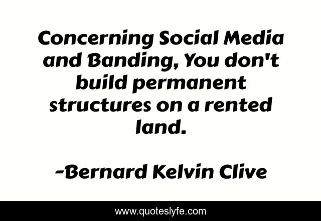 This page presents the quote "Concerning Social Media and Banding, You don't build permanent structures on a rented land.". Author of this quote is Bernard Kelvin Clive. This quote is about branding, social-media, personal-branding,.