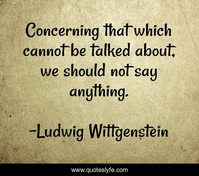 "Ludwig Wittgenstein Quotes." Quoteslyfe.com, 2025. Sun. 14 Dec. 2025. <https://www.quoteslyfe.com/quote/Concerning-that-which-cannot-be-talked-about-29972>.