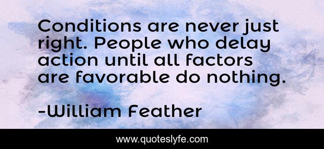This page presents the quote "Conditions are never just right. People who delay action until all factors are favorable do nothing.". Author of this quote is William Feather. .