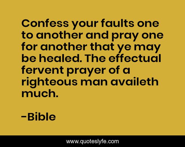 This page presents the quote "Confess your faults one to another and pray one for another that ye may be healed. The effectual fervent prayer of a righteous man availeth much.". Author of this quote is Bible. .