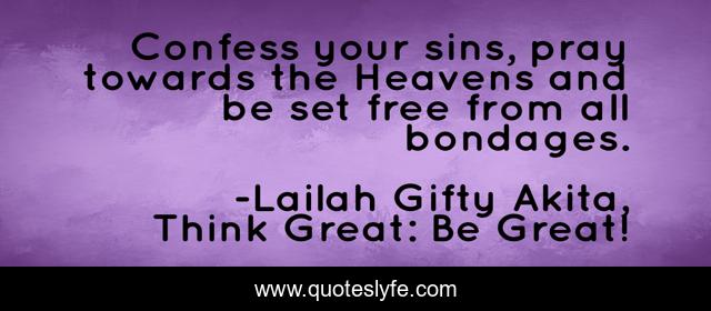 "Lailah Gifty Akita, Think Great: Be Great! Quotes." Quoteslyfe.com, 2025. Sat. 06 Dec. 2025. <https://www.quoteslyfe.com/quote/Confess-your-sins-pray-towards-the-Heavens-121401>.