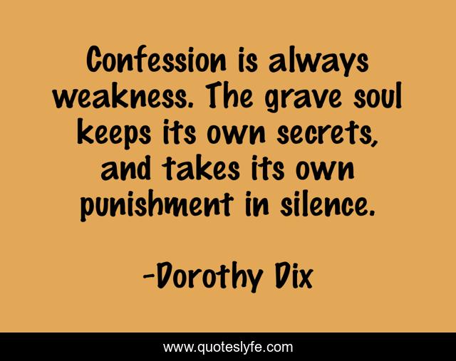 This page presents the quote "Confession is always weakness. The grave soul keeps its own secrets, and takes its own punishment in silence.". Author of this quote is Dorothy Dix. This quote is about confession, truth,.