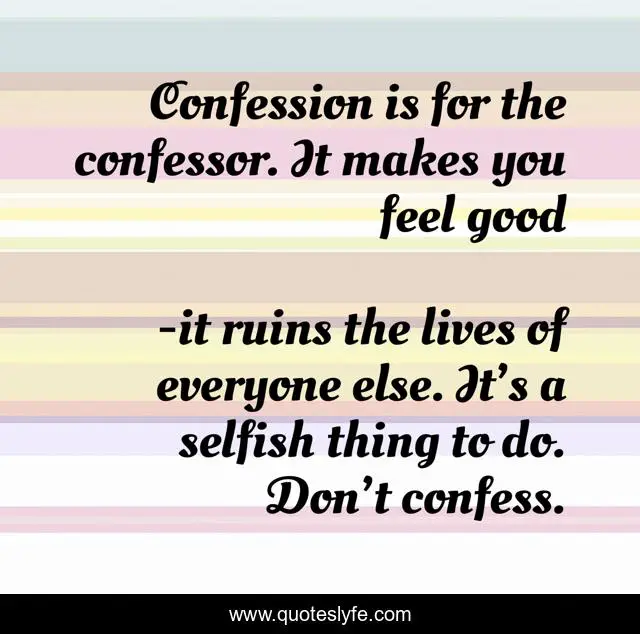 "it ruins the lives of everyone else. It’s a selfish thing to do. Don’t confess. Quotes." Quoteslyfe.com, 2025. Fri. 05 Dec. 2025. <https://www.quoteslyfe.com/quote/Confession-is-for-the-confessor-It-makes-223510>.