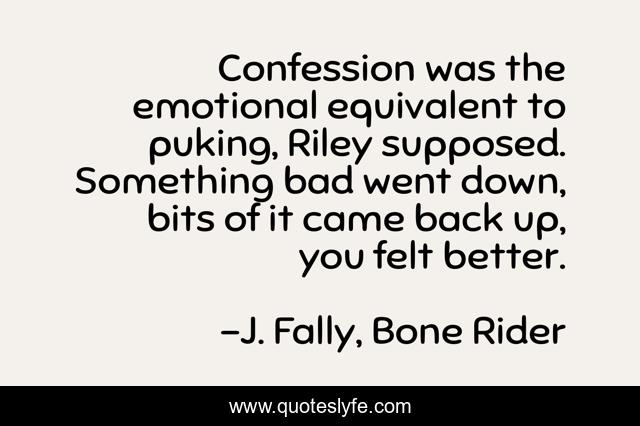 "J. Fally, Bone Rider Quotes." Quoteslyfe.com, 2025. Fri. 05 Dec. 2025. <https://www.quoteslyfe.com/quote/Confession-was-the-emotional-equivalent-to-puking-236128>.
