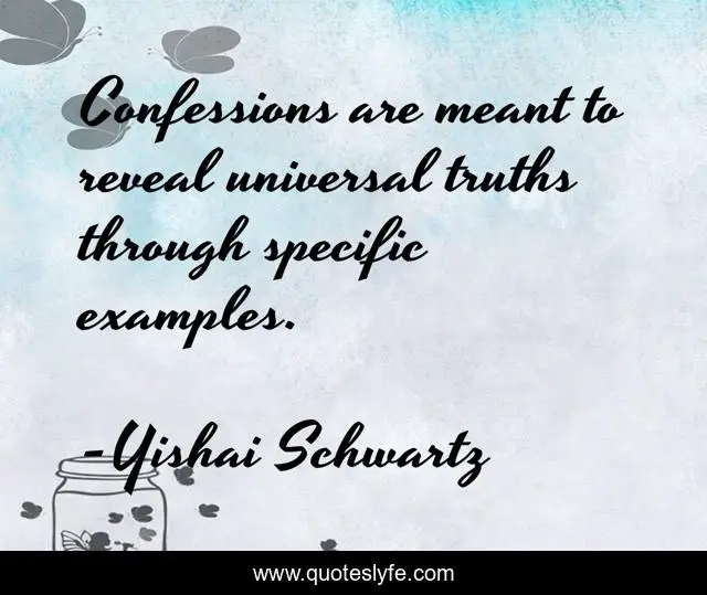 "Yishai Schwartz Quotes." Quoteslyfe.com, 2025. Sat. 06 Dec. 2025. <https://www.quoteslyfe.com/quote/Confessions-are-meant-to-reveal-universal-truths-166154>.