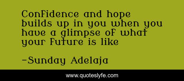 This page presents the quote "Confidence and hope builds up in you when you have a glimpse of what your future is like". Author of this quote is Sunday Adelaja. This quote is about confidence, builds, hope,.