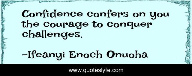 This page presents the quote "Confidence confers on you the courage to conquer challenges.". Author of this quote is Ifeanyi Enoch Onuoha. This quote is about motivation, challenge, winner, confidence, ifeanyi-enoch-onuoha, courage, life-lessons, leadership, overcomer,.
