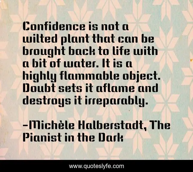 "Michèle Halberstadt, The Pianist in the Dark Quotes." Quoteslyfe.com, 2025. Sun. 07 Dec. 2025. <https://www.quoteslyfe.com/quote/Confidence-is-not-a-wilted-plant-that-144465>.