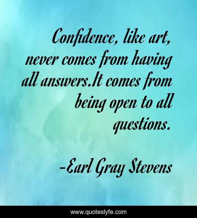 This page presents the quote "Confidence, like art, never comes from having all answers.It comes from being open to all questions.". Author of this quote is Earl Gray Stevens. This quote is about confidence, leadership, productivity, business,.