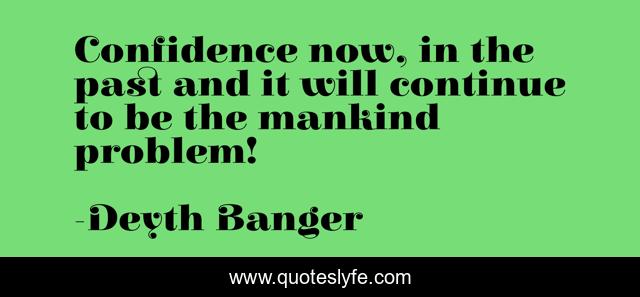 This page presents the quote "Confidence now, in the past and it will continue to be the mankind problem!". Author of this quote is Deyth Banger. This quote is about problem, continue, odd, difficult,.