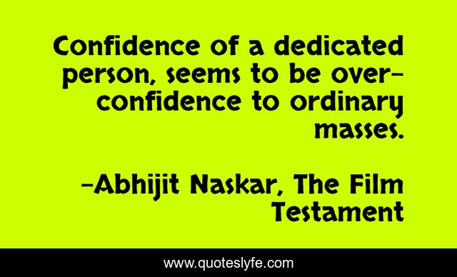 "Abhijit Naskar, The Film Testament Quotes." Quoteslyfe.com, 2025. Sun. 07 Dec. 2025. <https://www.quoteslyfe.com/quote/Confidence-of-a-dedicated-person-seems-to-36535>.