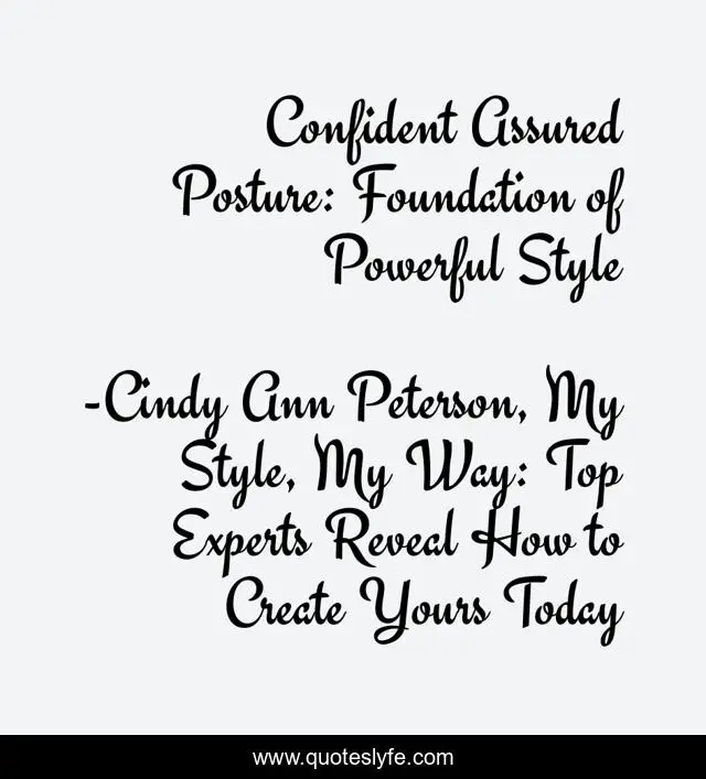 "Cindy Ann Peterson, My Style, My Way: Top Experts Reveal How to Create Yours Today Quotes." Quoteslyfe.com, 2025. Fri. 05 Dec. 2025. <https://www.quoteslyfe.com/quote/Confident-Assured-Posture-Foundation-of-Powerful-Style-13140>.