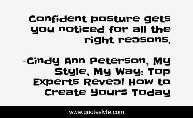 "Cindy Ann Peterson, My Style, My Way: Top Experts Reveal How to Create Yours Today Quotes." Quoteslyfe.com, 2025. Mon. 08 Dec. 2025. <https://www.quoteslyfe.com/quote/Confident-posture-gets-you-noticed-for-all-144349>.