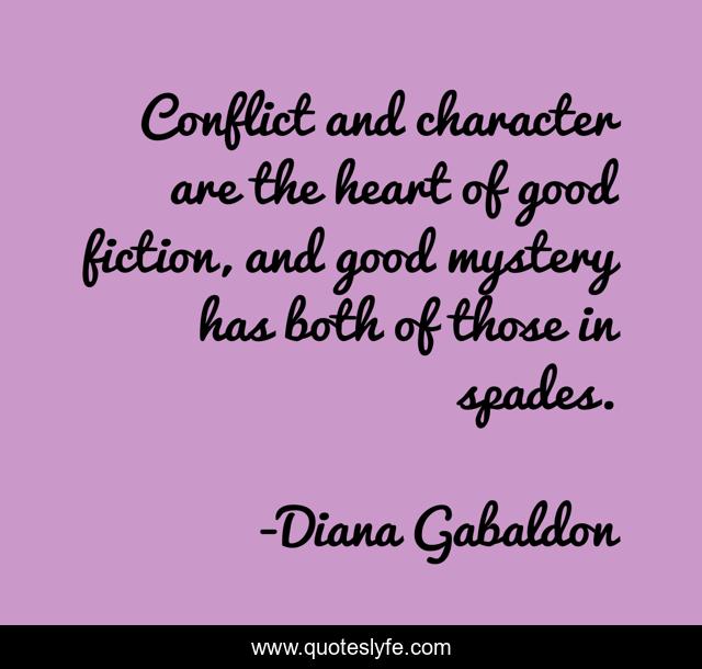 This page presents the quote "Conflict and character are the heart of good fiction, and good mystery has both of those in spades.". Author of this quote is Diana Gabaldon. This quote is about diana-gabaldon, mystery, character, conflict, fiction,.
