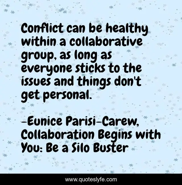 "Eunice Parisi-Carew, Collaboration Begins with You: Be a Silo Buster Quotes." Quoteslyfe.com, 2025. Fri. 05 Dec. 2025. <https://www.quoteslyfe.com/quote/Conflict-can-be-healthy-within-a-collaborative-234248>.