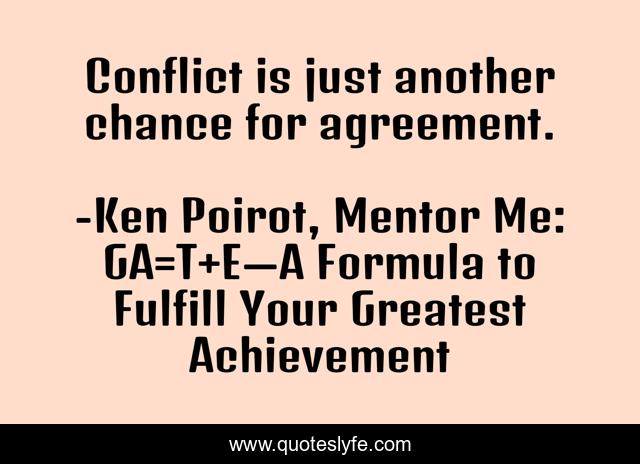 "Ken Poirot, Mentor Me: GA=T+E—A Formula to Fulfill Your Greatest Achievement Quotes." Quoteslyfe.com, 2025. Mon. 08 Dec. 2025. <https://www.quoteslyfe.com/quote/Conflict-is-just-another-chance-for-agreement-128769>.