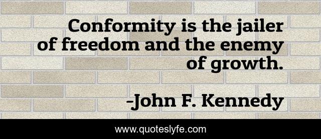 This page presents the quote "Conformity is the jailer of freedom and the enemy of growth.". Author of this quote is John F. Kennedy. This quote is about freedom, individuality, growth, conformity,.