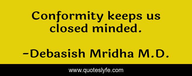 This page presents the quote "Conformity keeps us closed minded.". Author of this quote is Debasish Mridha M.D.. This quote is about close-minded, debasish, mridha, philosophy, quotes, inspirational, enthusiasm, conformity, debasish-mridha-m-d,.