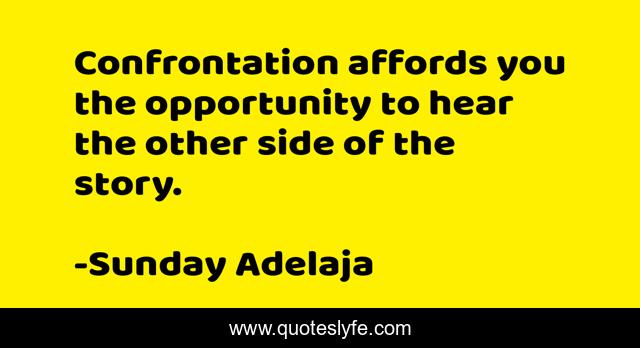 This page presents the quote "Confrontation affords you the opportunity to hear the other side of the story.". Author of this quote is Sunday Adelaja. This quote is about story, opportunity, confrontation,.