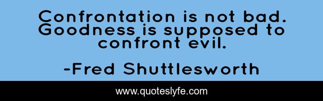 This page presents the quote "Confrontation is not bad. Goodness is supposed to confront evil.". Author of this quote is Fred Shuttlesworth. This quote is about protest, confrontation, evil,.