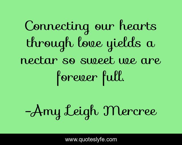 This page presents the quote "Connecting our hearts through love yields a nectar so sweet we are forever full.". Author of this quote is Amy Leigh Mercree. This quote is about quotes-de-la-vida, amy-leigh-mercree, nectar, quote-hearts, connected-hearts, quote-of-the-day, connection, quotes-tumblr, quote-of-the-week,.