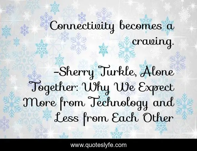 "Sherry Turkle, Alone Together: Why We Expect More from Technology and Less from Each Other Quotes." Quoteslyfe.com, 2025. Sat. 06 Dec. 2025. <https://www.quoteslyfe.com/quote/Connectivity-becomes-a-craving-252749>.
