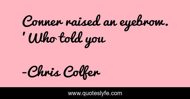 "Chris Colfer Quotes." Quoteslyfe.com, 2025. Mon. 08 Dec. 2025. <https://www.quoteslyfe.com/quote/Conner-raised-an-eyebrow-Who-told-you-133802>.