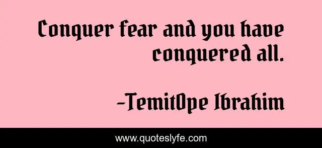 "TemitOpe Ibrahim Quotes." Quoteslyfe.com, 2025. Sat. 06 Dec. 2025. <https://www.quoteslyfe.com/quote/Conquer-fear-and-you-have-conquered-all-91879>.