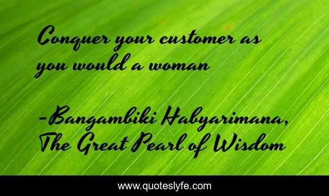 "Bangambiki Habyarimana, The Great Pearl of Wisdom Quotes." Quoteslyfe.com, 2025. Mon. 15 Dec. 2025. <https://www.quoteslyfe.com/quote/Conquer-your-customer-as-you-would-a-128483>.
