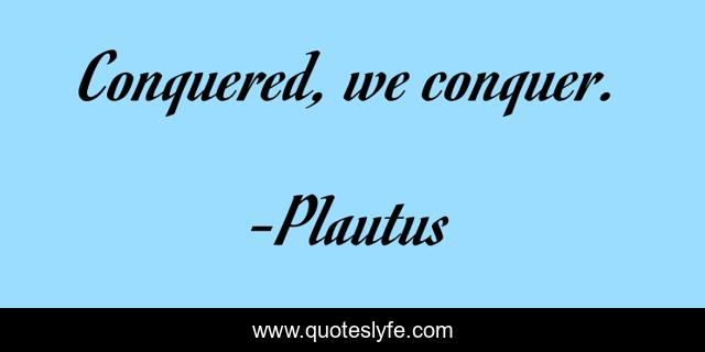 This page presents the quote "Conquered, we conquer.". Author of this quote is Plautus. This quote is about conquered, conquer,.