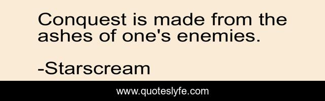 This page presents the quote "Conquest is made from the ashes of one's enemies.". Author of this quote is Starscream. .