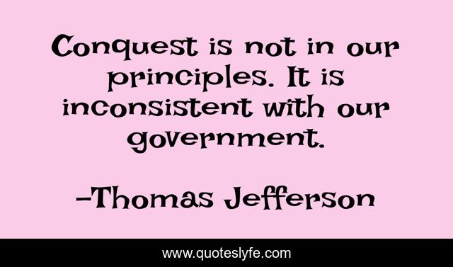 This page presents the quote "Conquest is not in our principles. It is inconsistent with our government.". Author of this quote is Thomas Jefferson. This quote is about conquest, principles,.