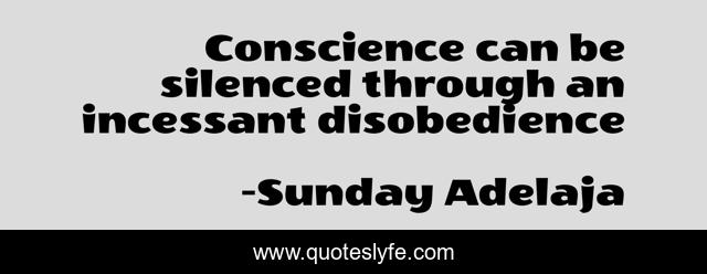 This page presents the quote "Conscience can be silenced through an incessant disobedience". Author of this quote is Sunday Adelaja. This quote is about conscience, disobedience, silenced, incessant, truth, fact,.