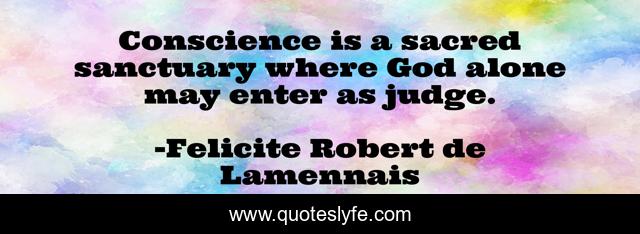"Felicite Robert de Lamennais Quotes." Quoteslyfe.com, 2025. Fri. 05 Dec. 2025. <https://www.quoteslyfe.com/quote/Conscience-is-a-sacred-sanctuary-where-God-262053>.